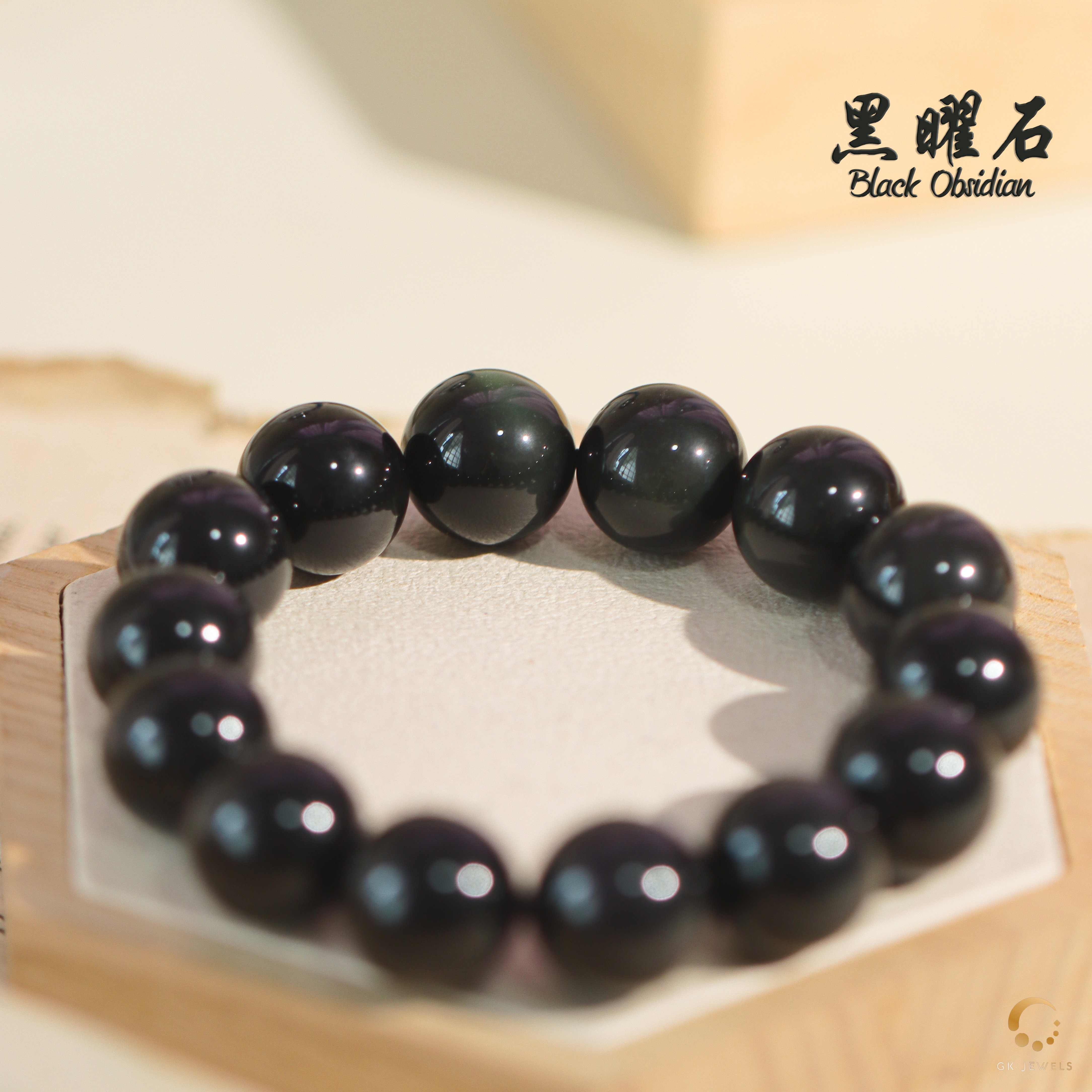 黑曜石手串 14mm左右