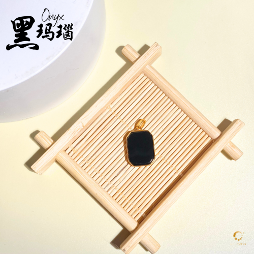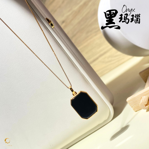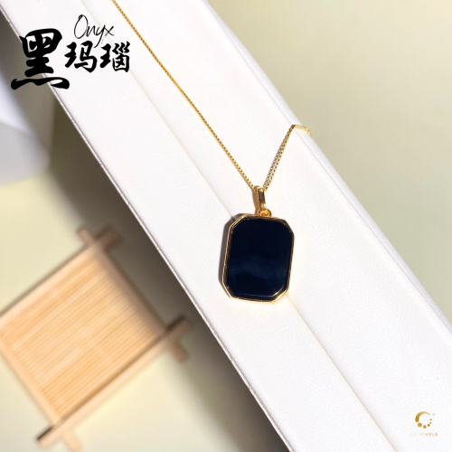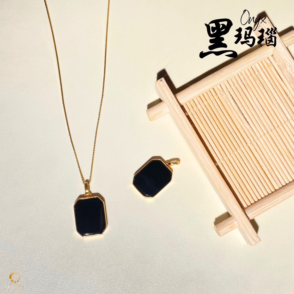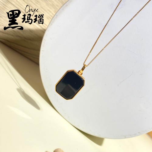 黑玛瑙无事牌吊坠 17x13mm左右(包括项链)
