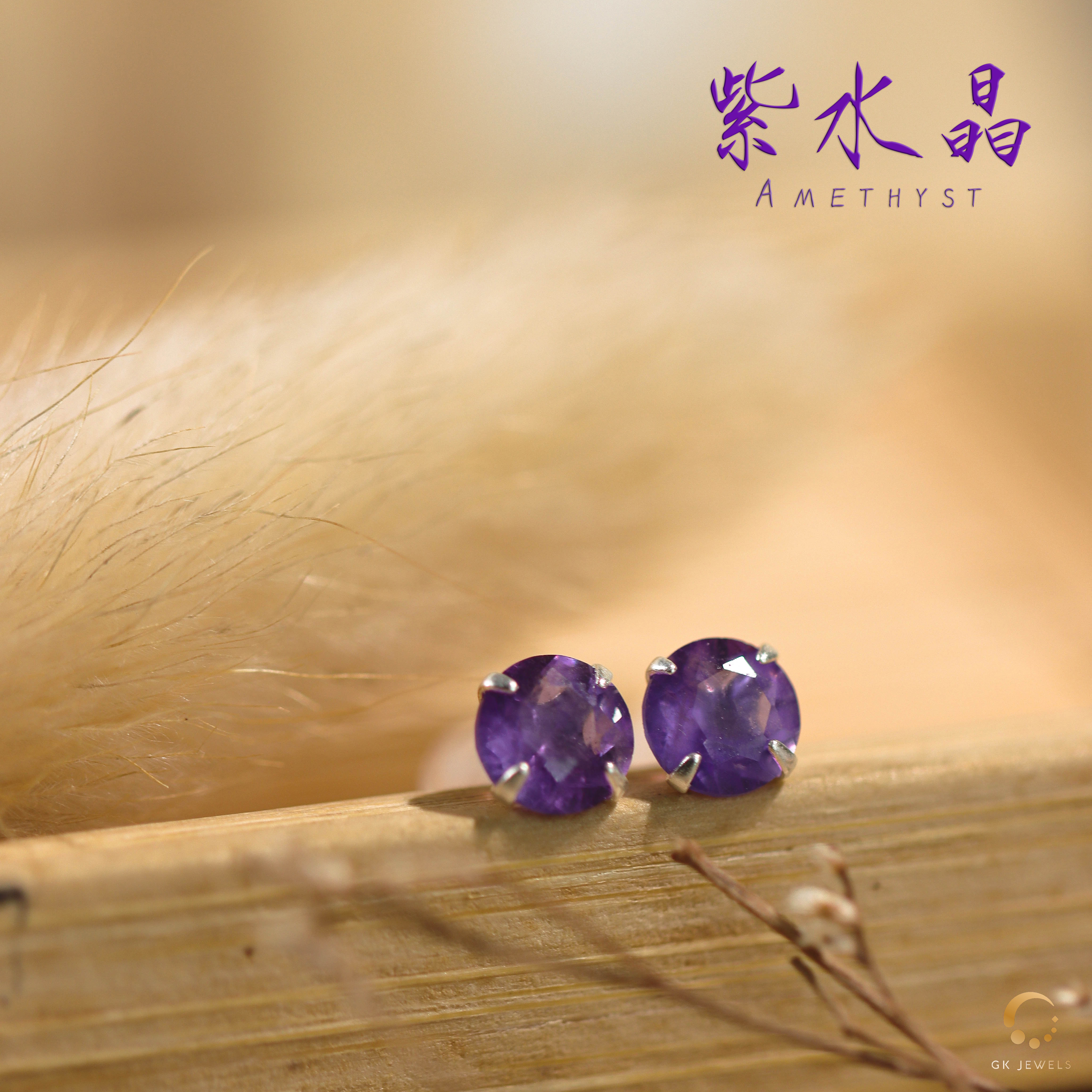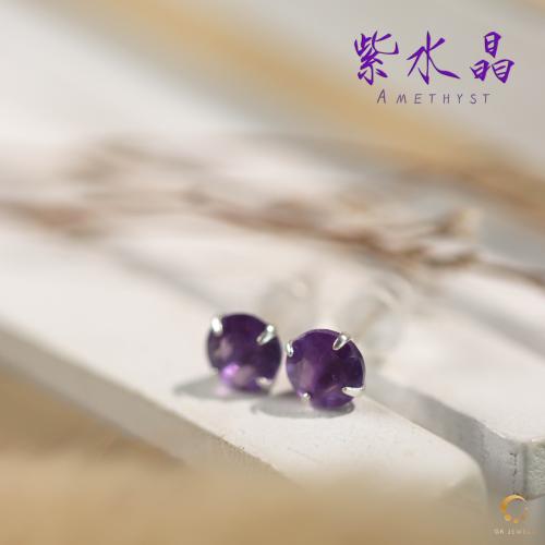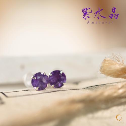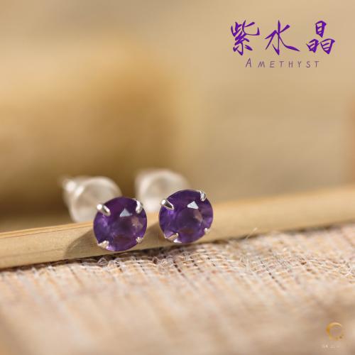 紫水晶4爪耳钉 5mm左右