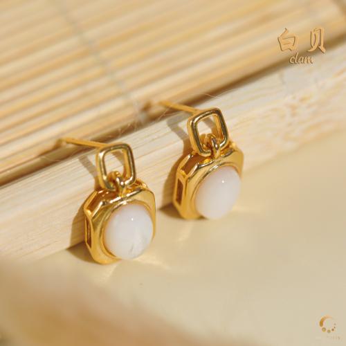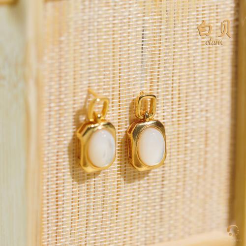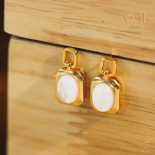 白贝蛋形耳钉 6x8mm左右