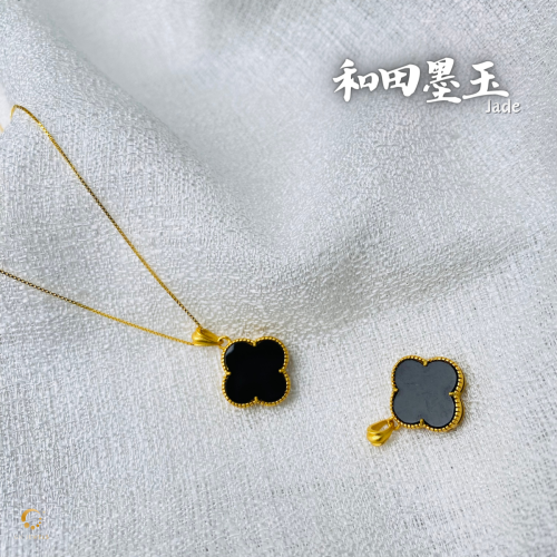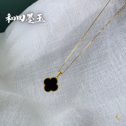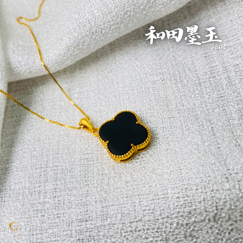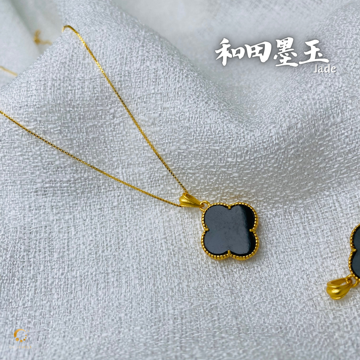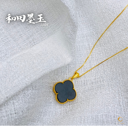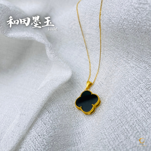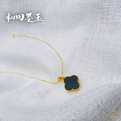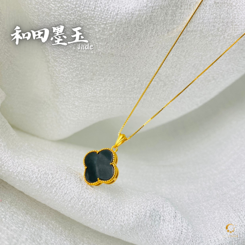 和田墨玉四叶草吊坠 14mm左右(包括项链)
