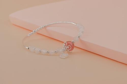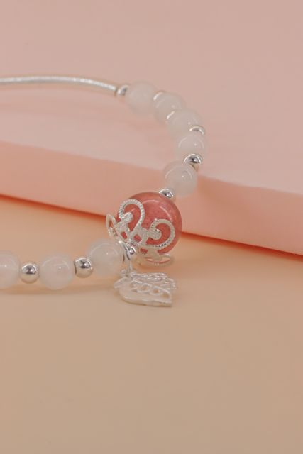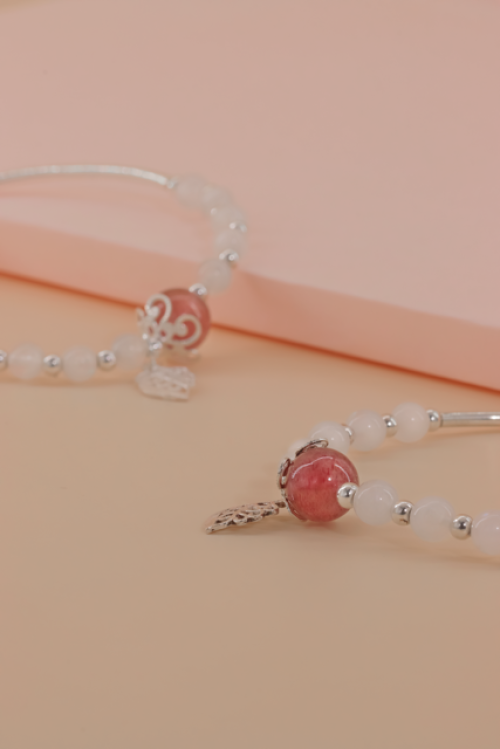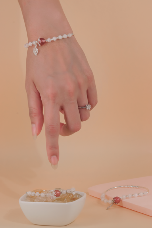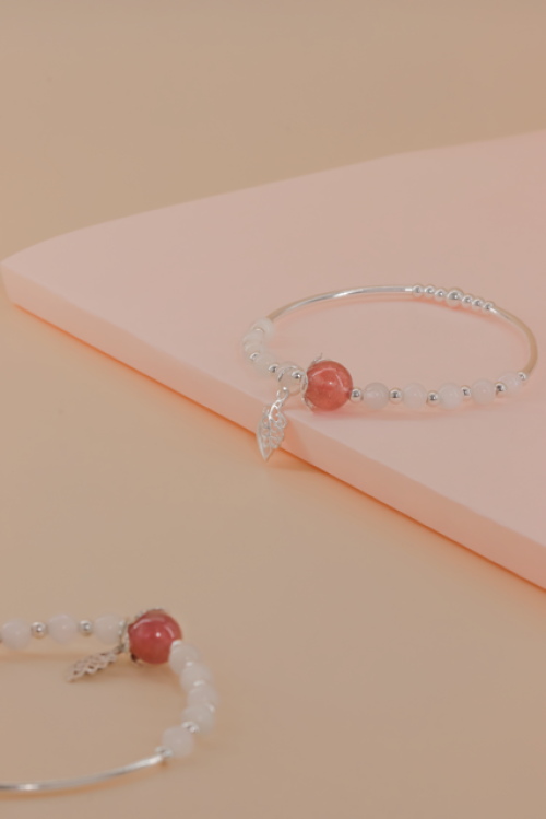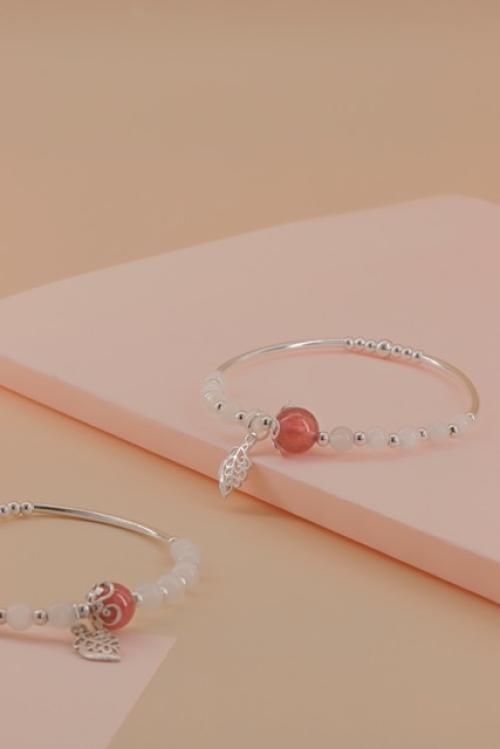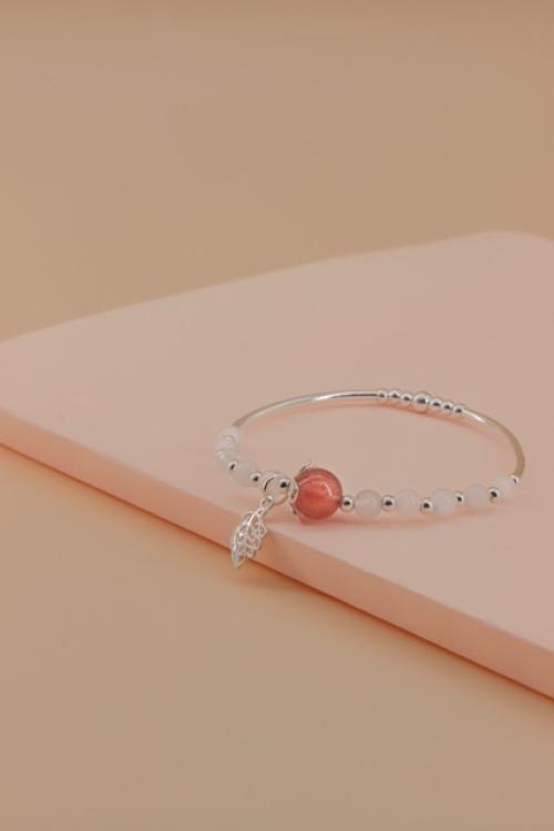 月光石配草莓晶配925叶子手串