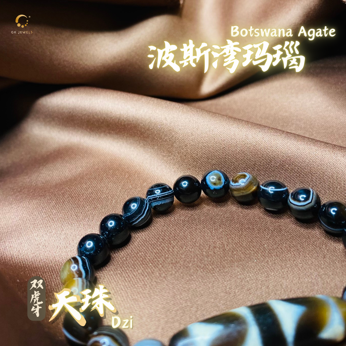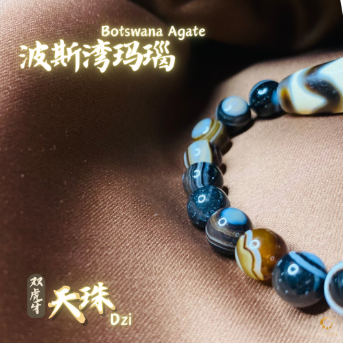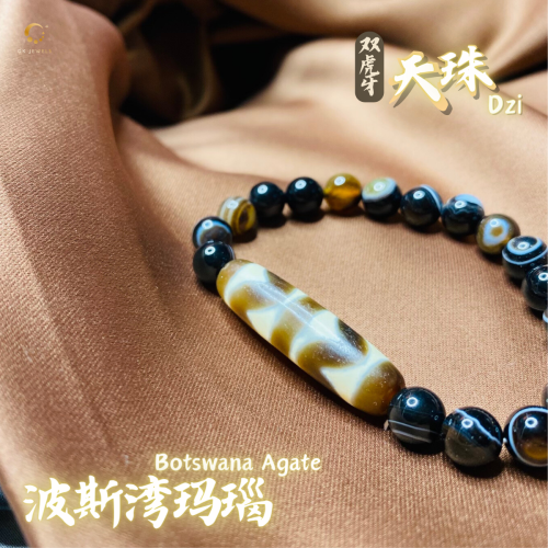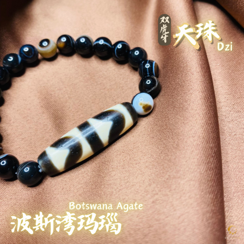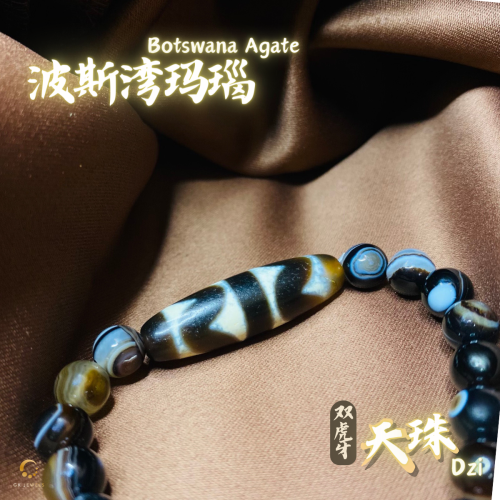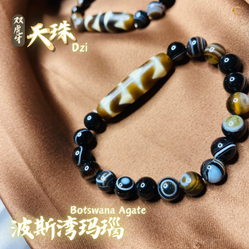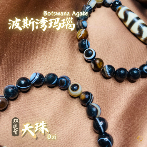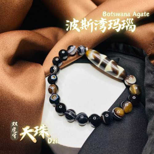 双虎牙天珠配波斯湾玛瑙手串 8mm左右
