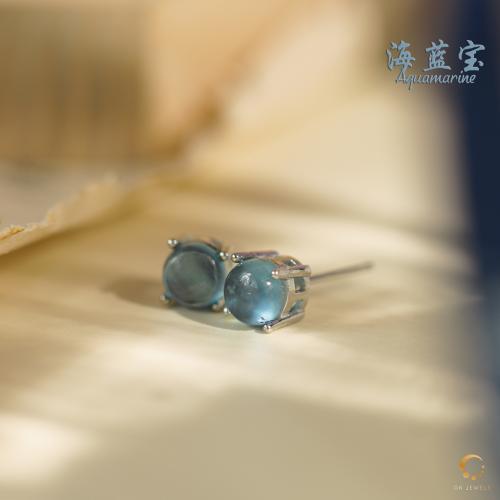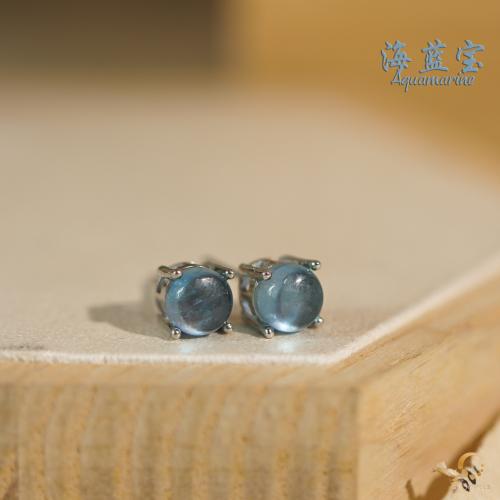 海蓝宝4爪耳钉 6mm左右
