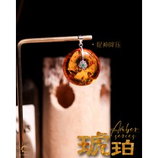 花琥珀平安扣吊坠