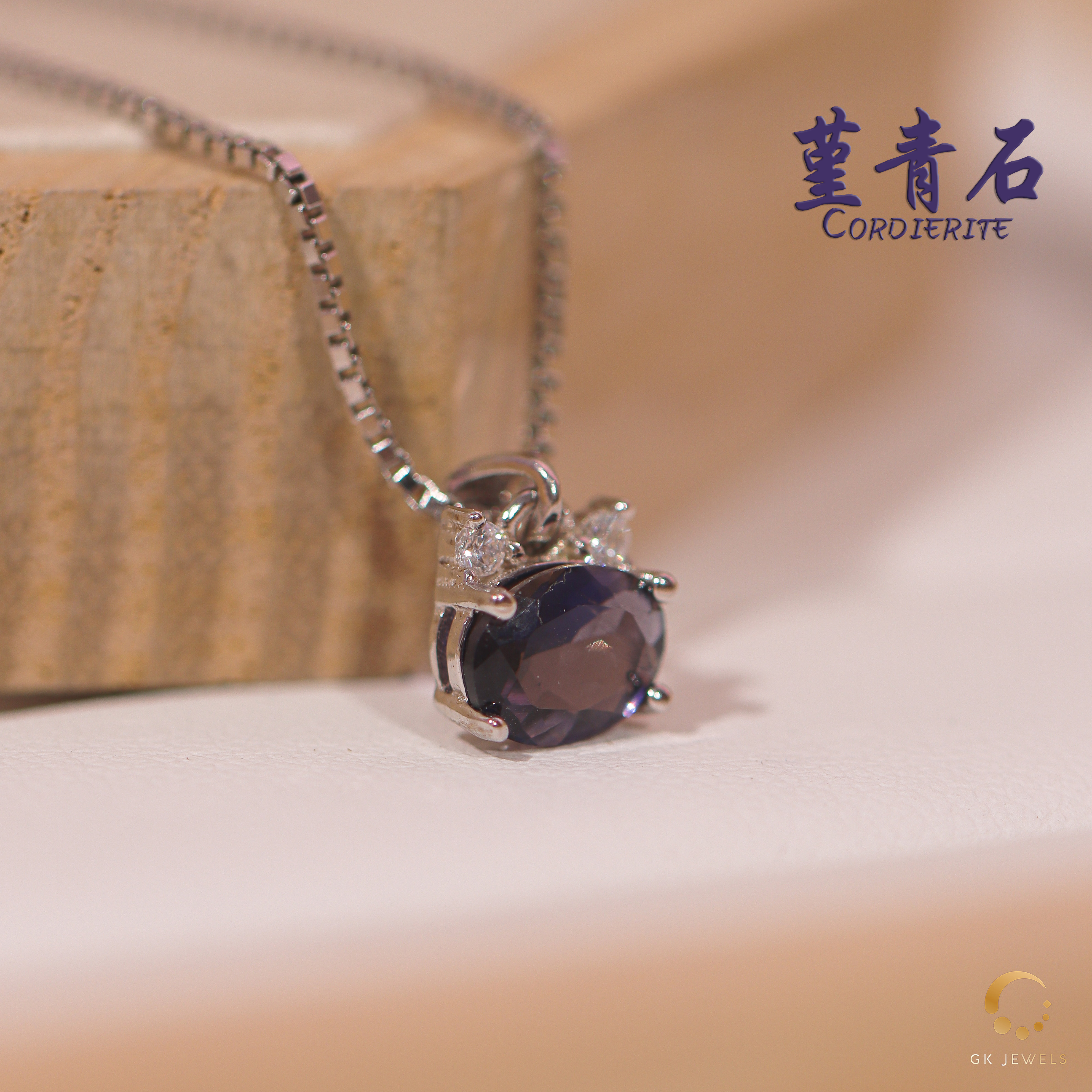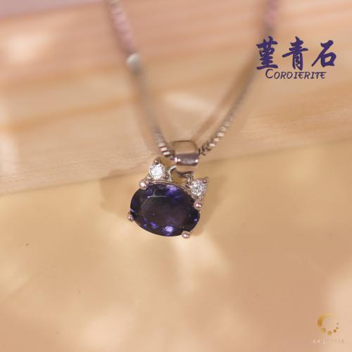堇青石猫吊坠 6x8mm左右(包括项链)