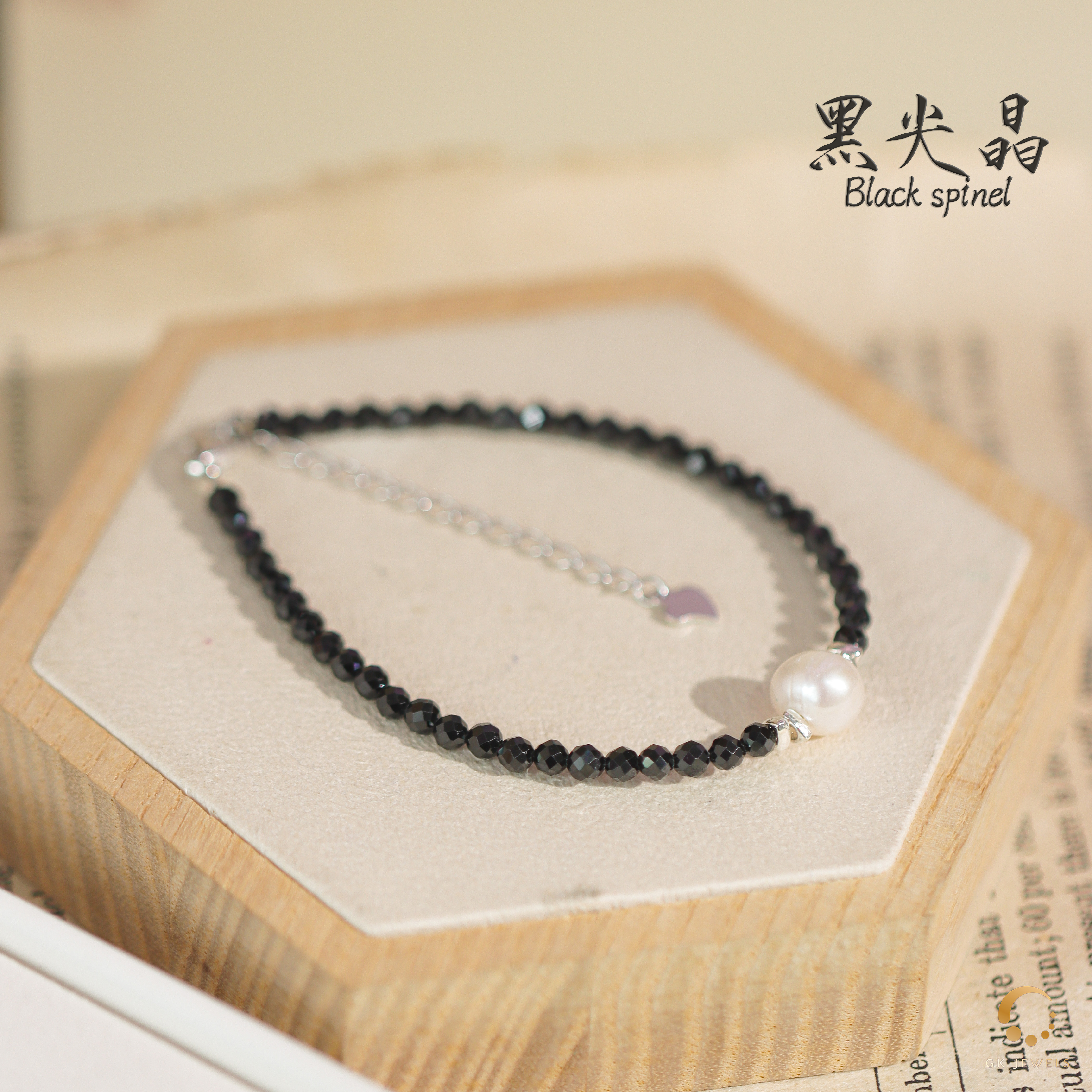 黑尖晶切面配珍珠手链 3mm左右 - 长21cm左右