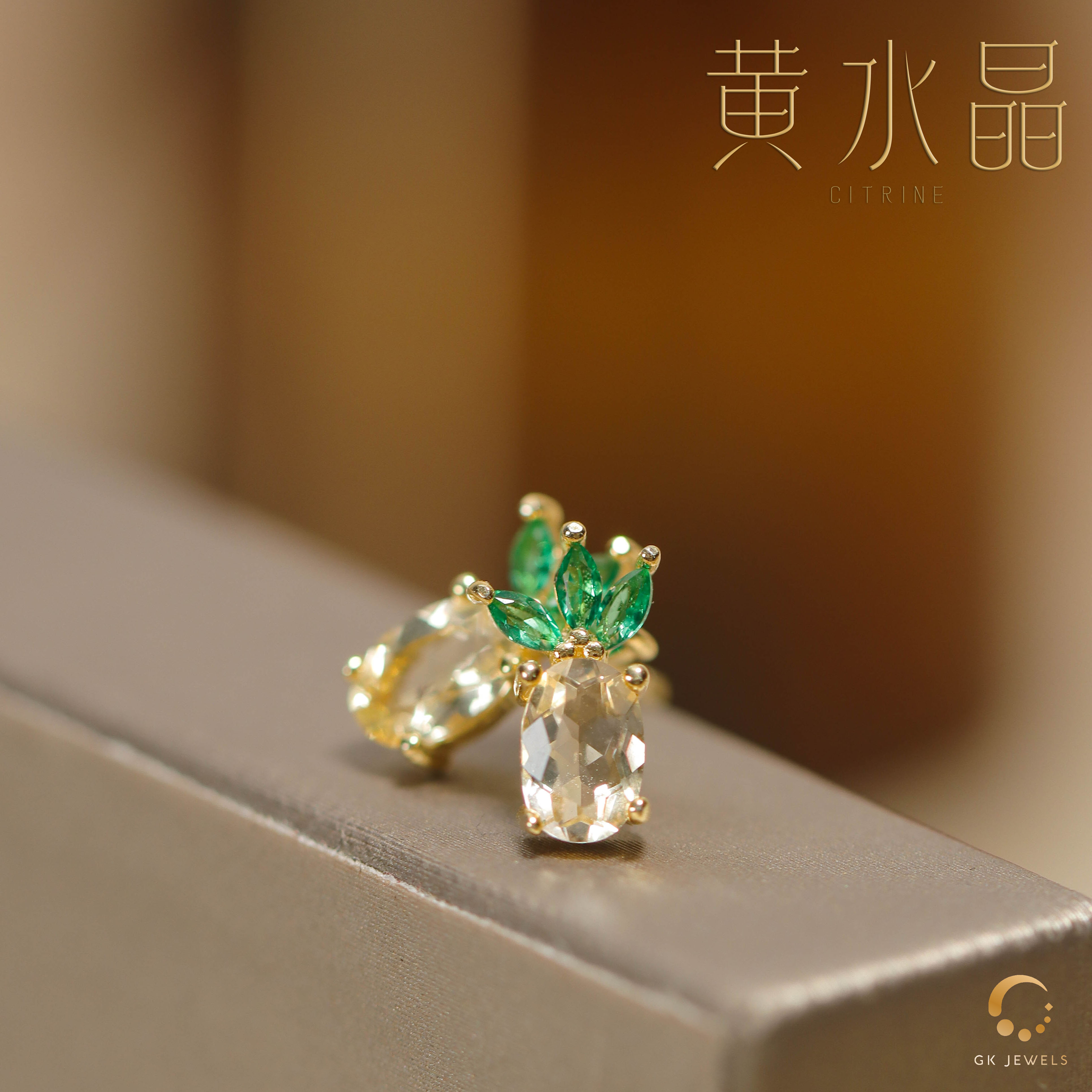 黄水晶凤梨耳钉
