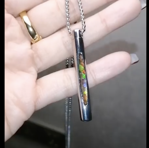 不锈钢斑彩圆柱吊坠-银(包括项链-70cm长)