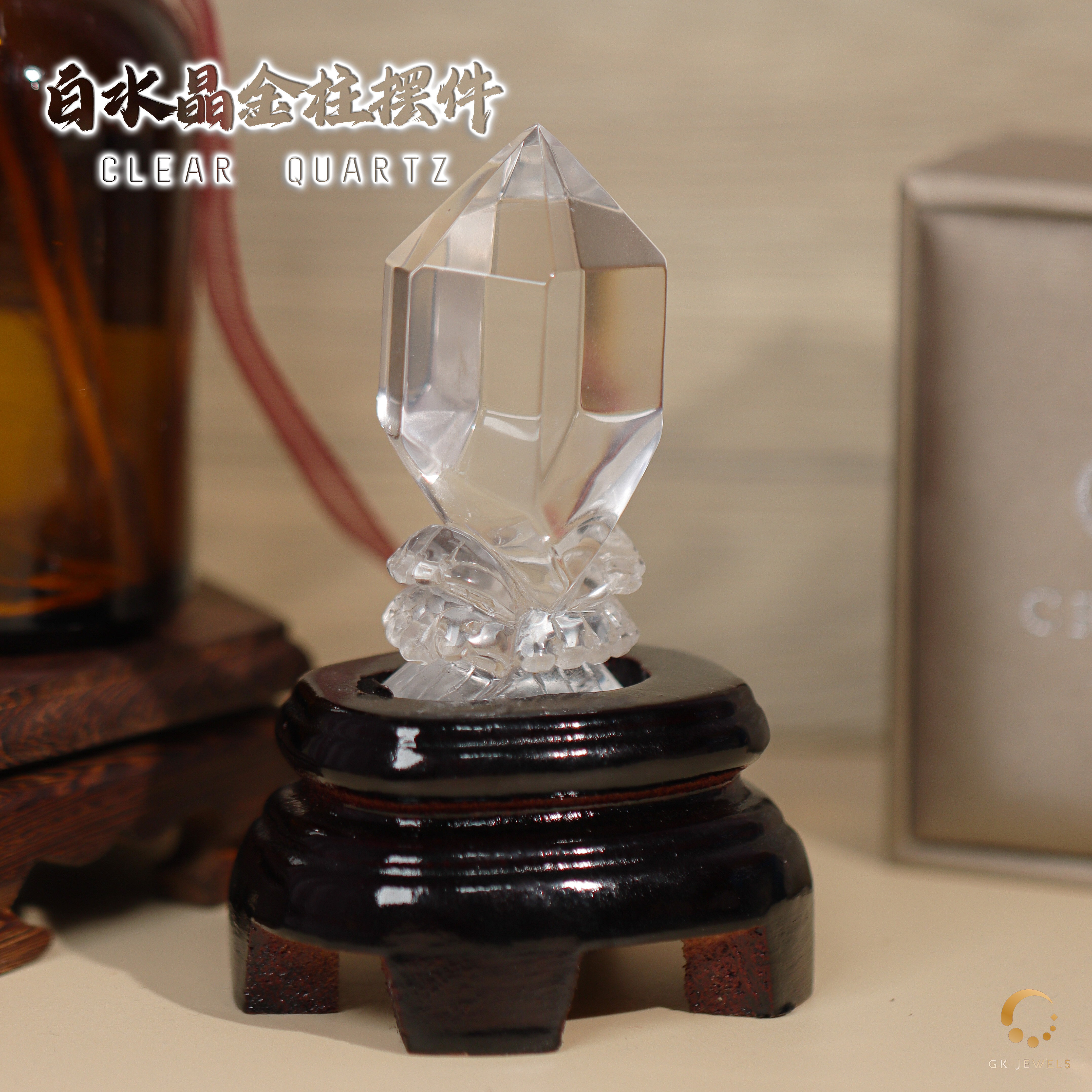 白水晶金柱摆件