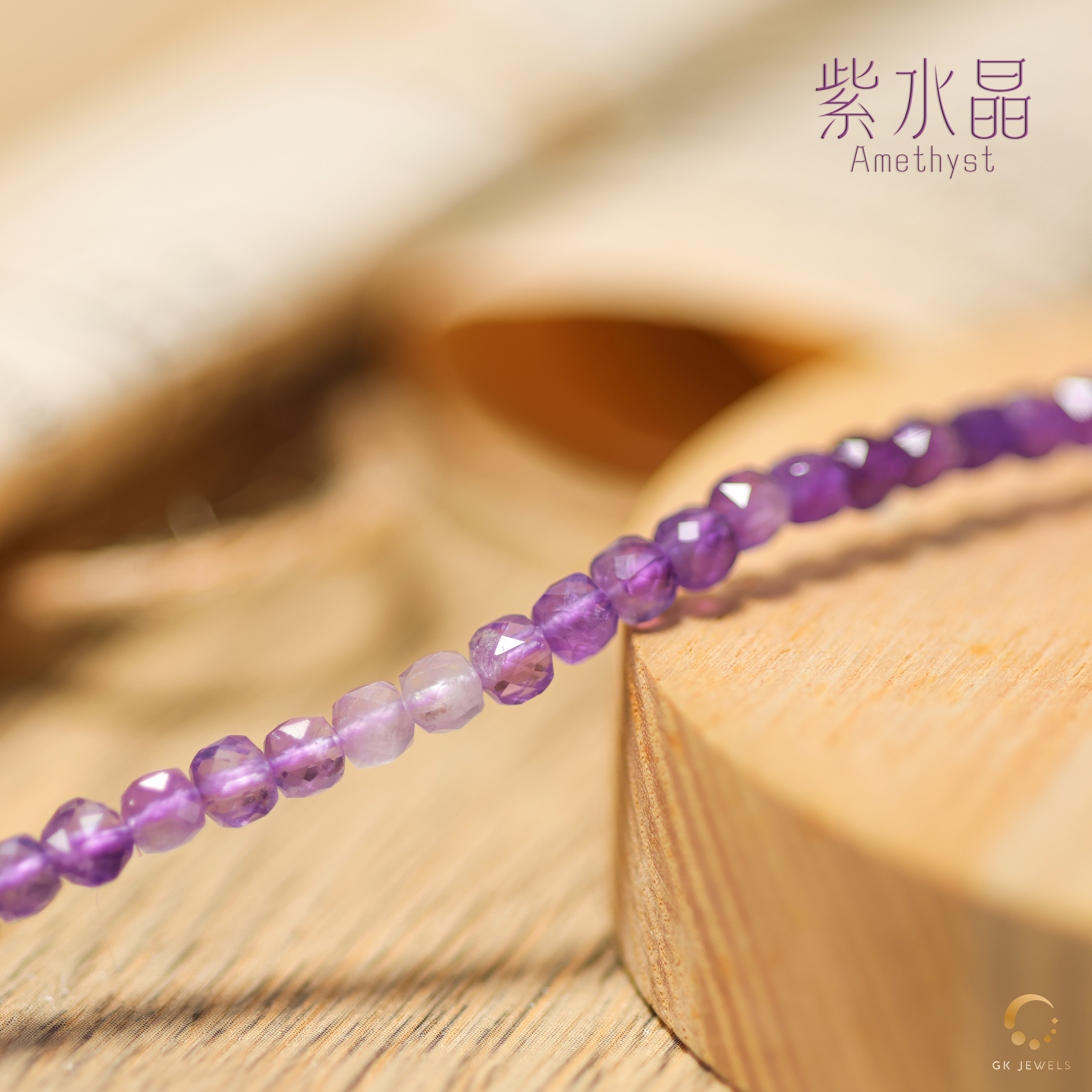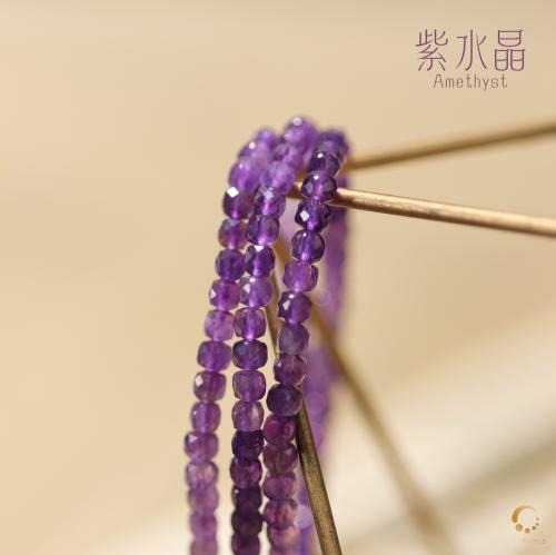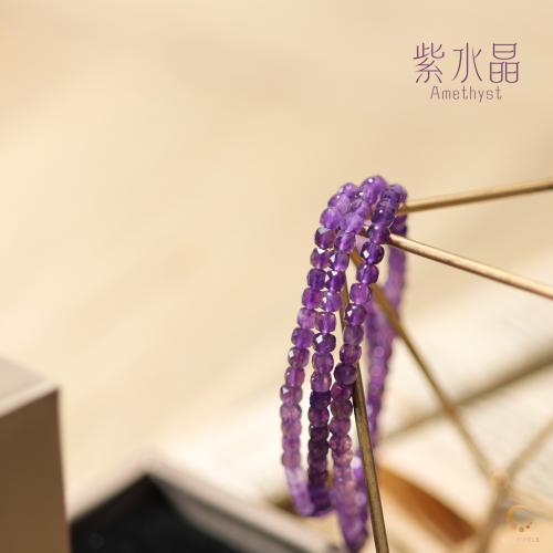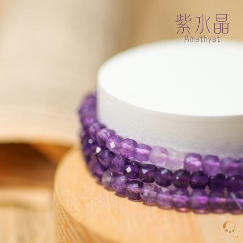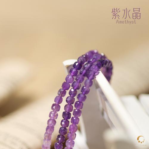 紫水晶方形切面3圈手串 4mm左右