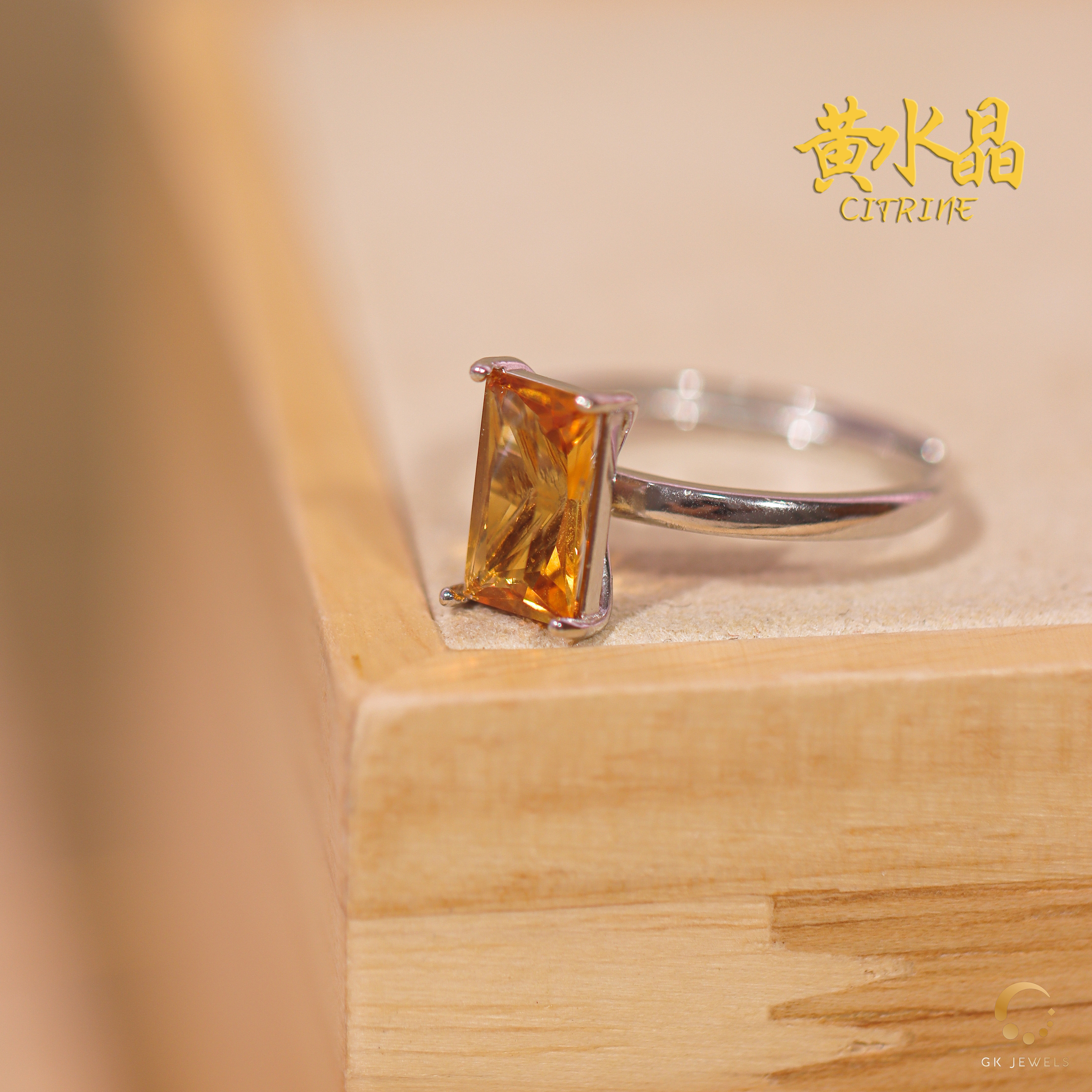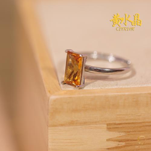 黄水晶长方形戒指 10x6mm左右