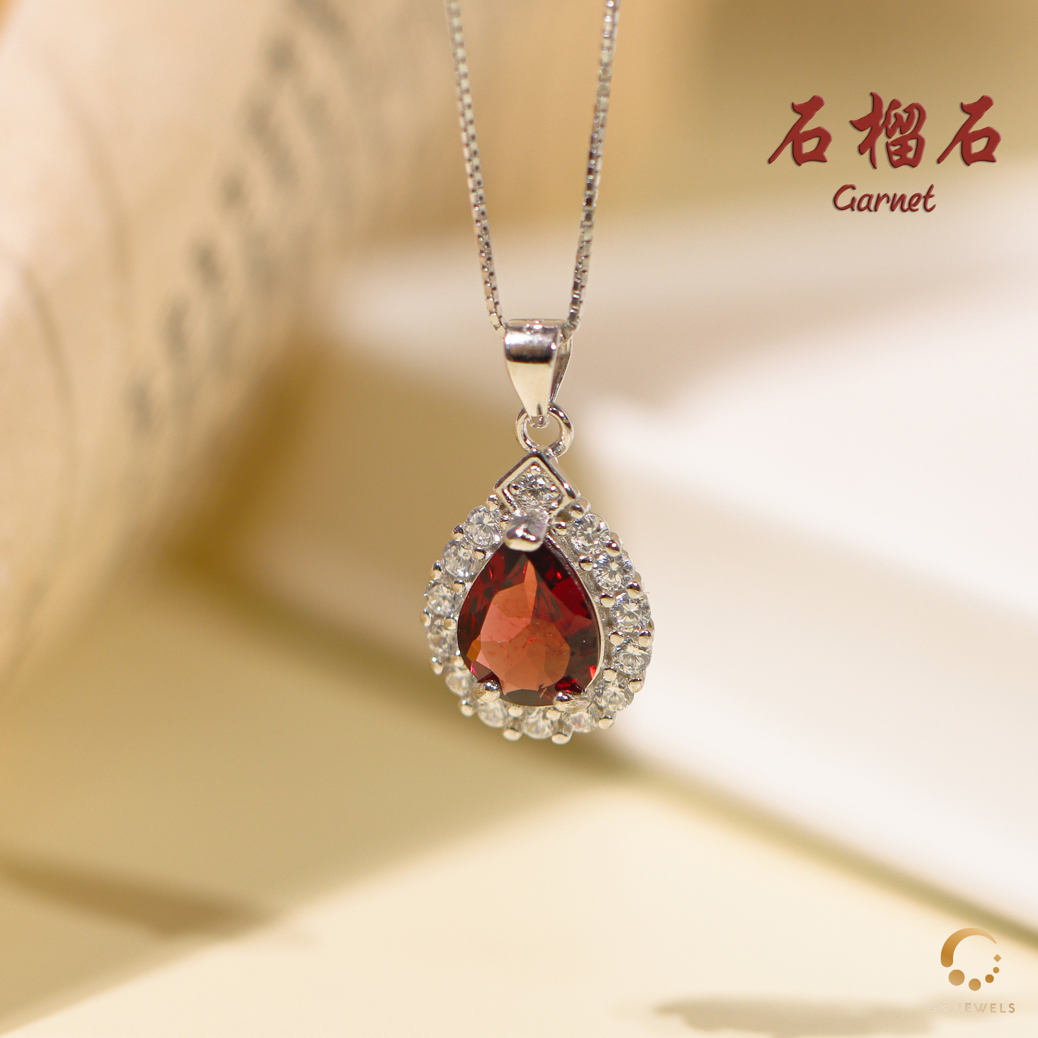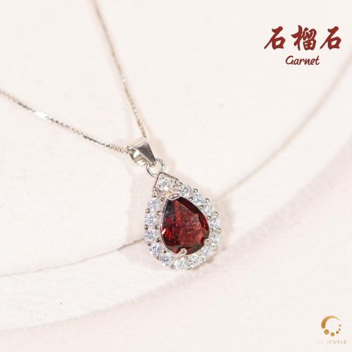 石榴石水滴带钻吊坠 7x9mm左右(包括项链)