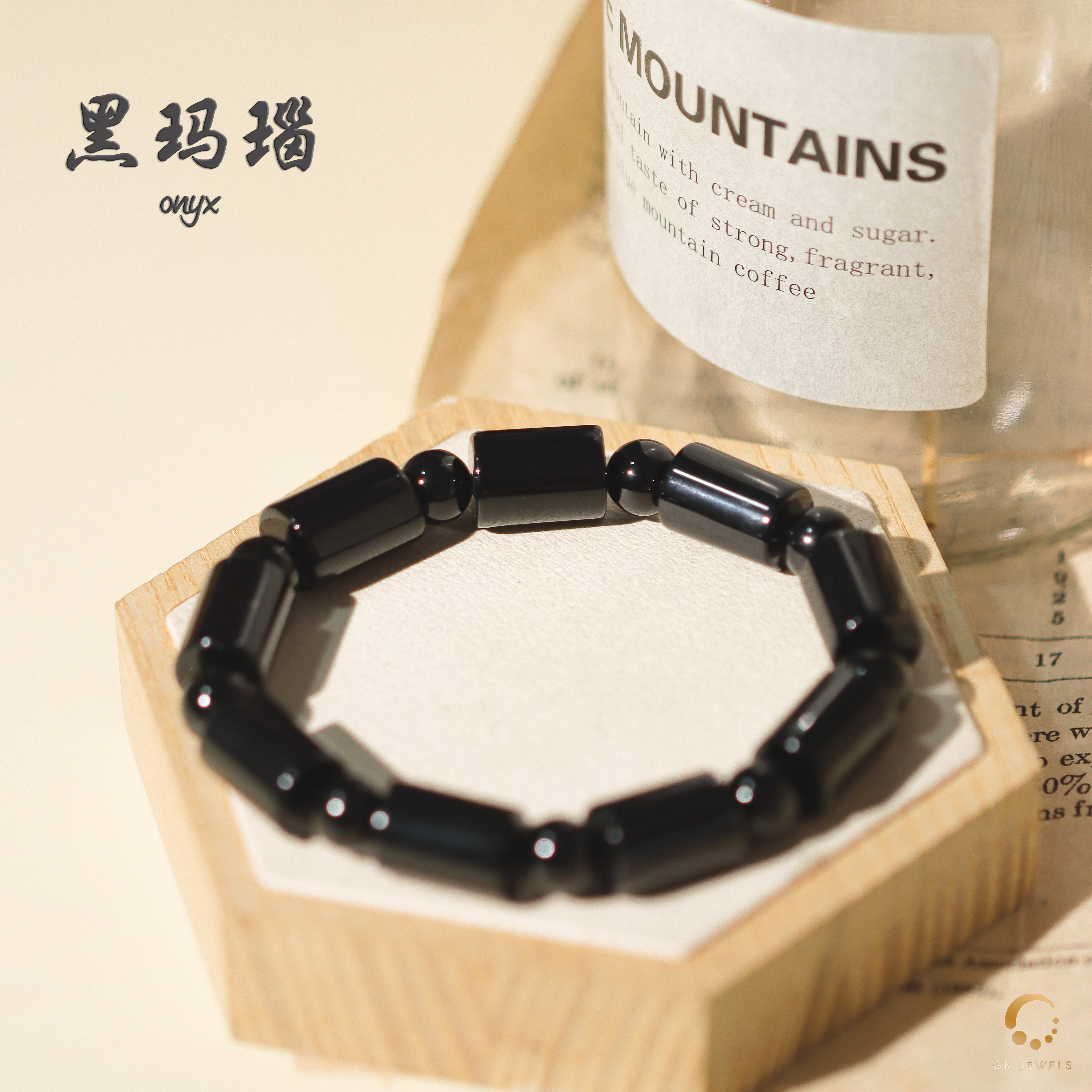 黑玛瑙圆柱形手串 9-10mm左右