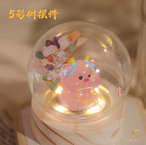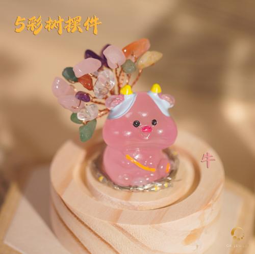 牛-5彩树摆件