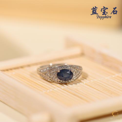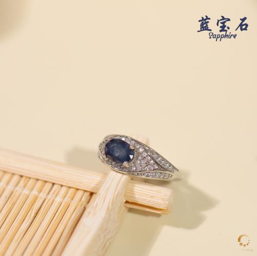 蓝宝石蛋形带钻戒指 5x7mm左右