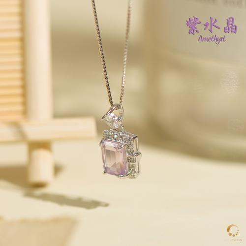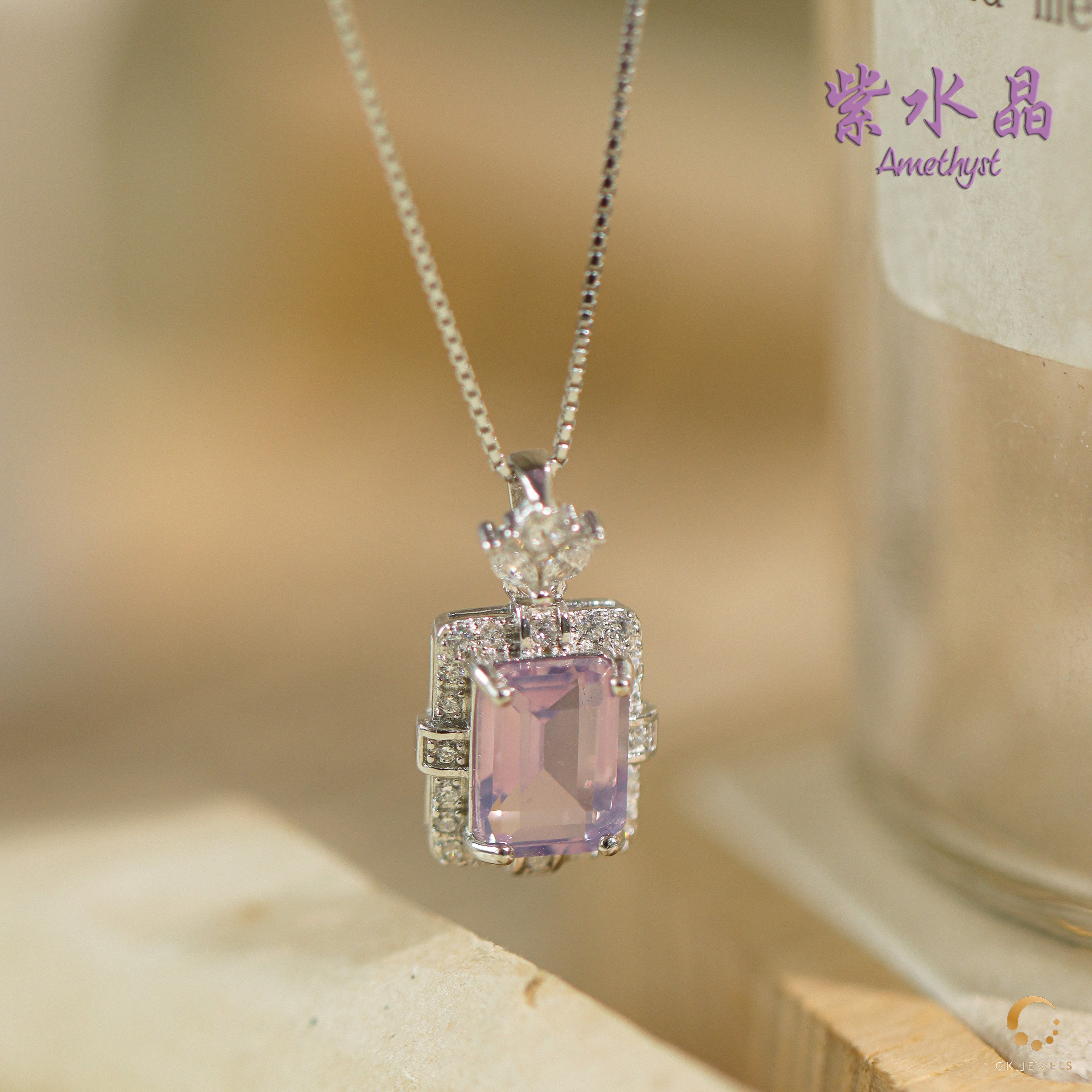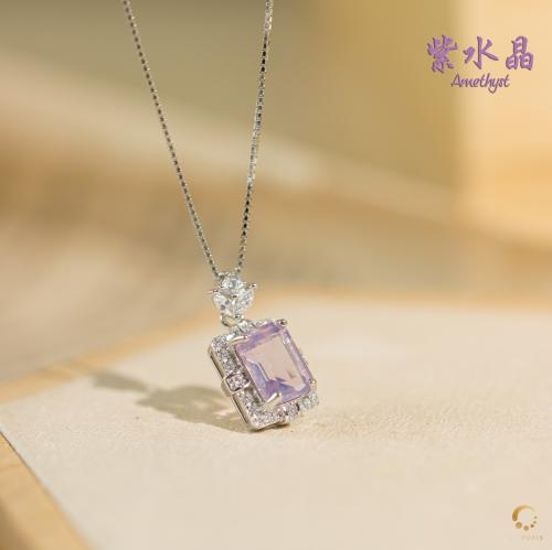 紫玉晶长方形带钻吊坠 6x8mm左右(包括项链)