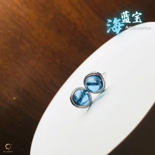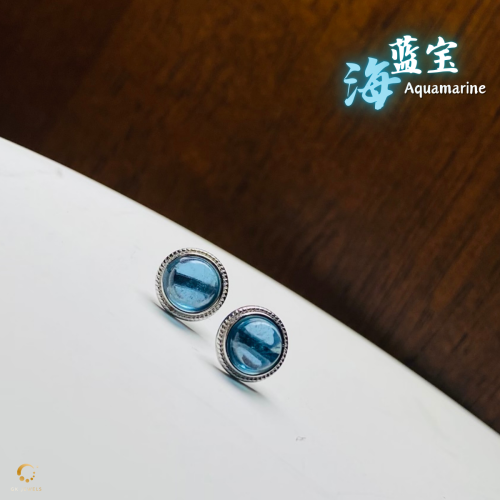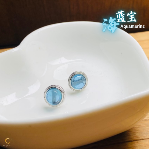 海蓝宝圆形耳钉 6mm左右