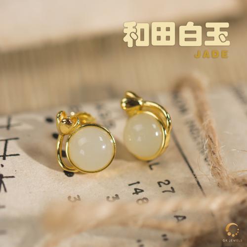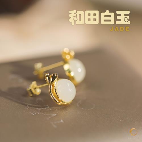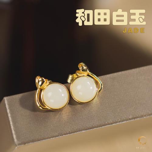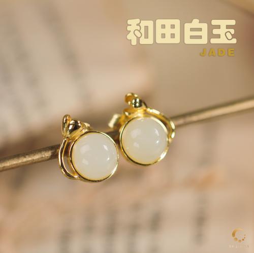 和田白玉耳环