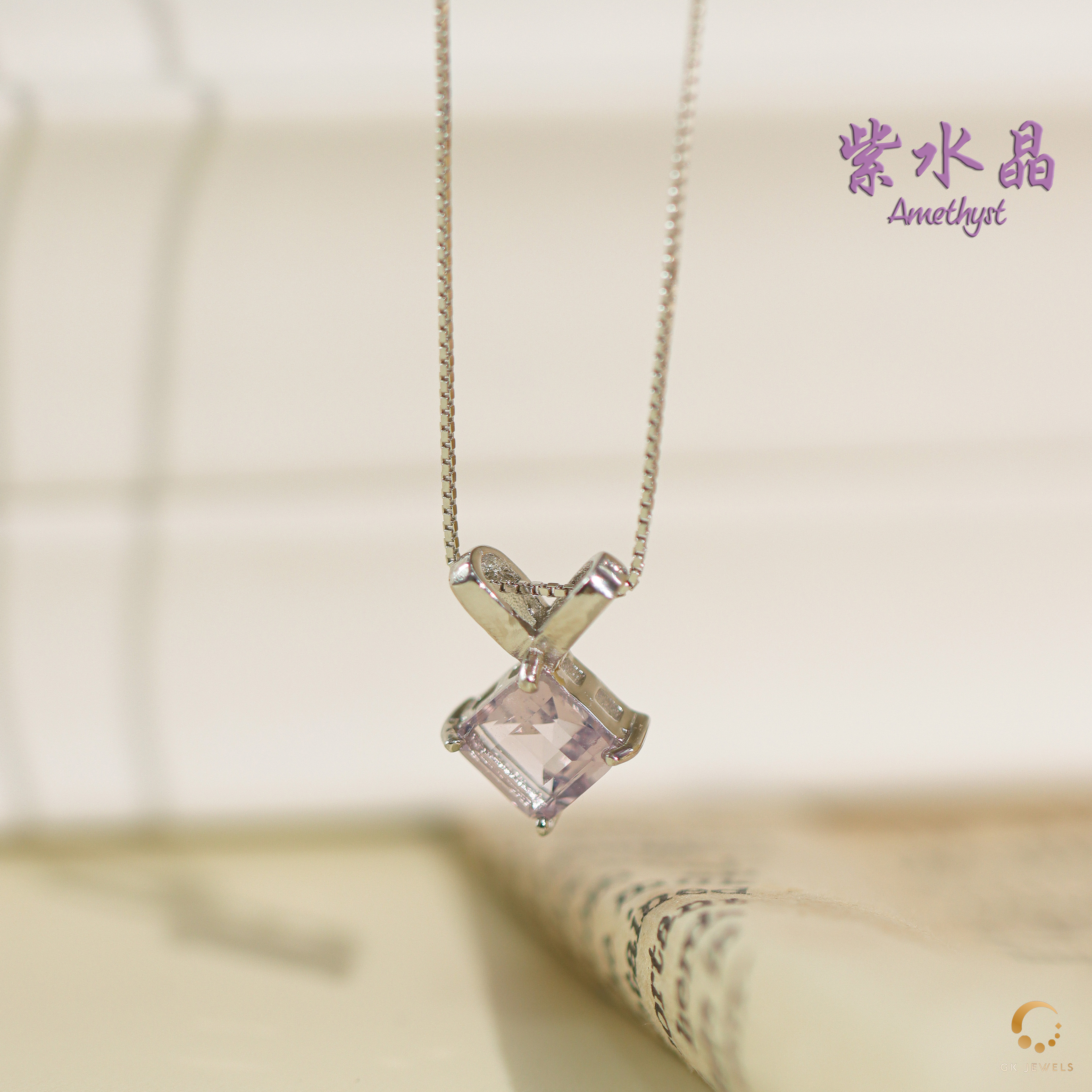 紫水晶方形吊坠 6mm左右(包括项链)
