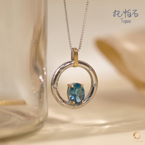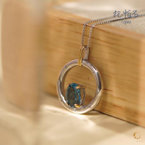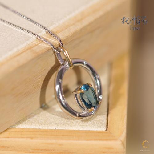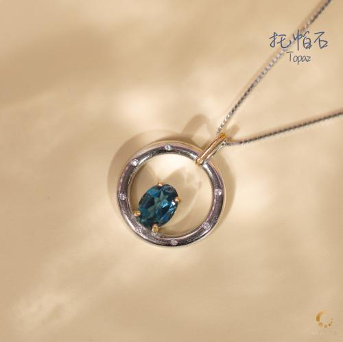 伦敦蓝托帕石蛋形吊坠 5x7mm左右(包括项链)
