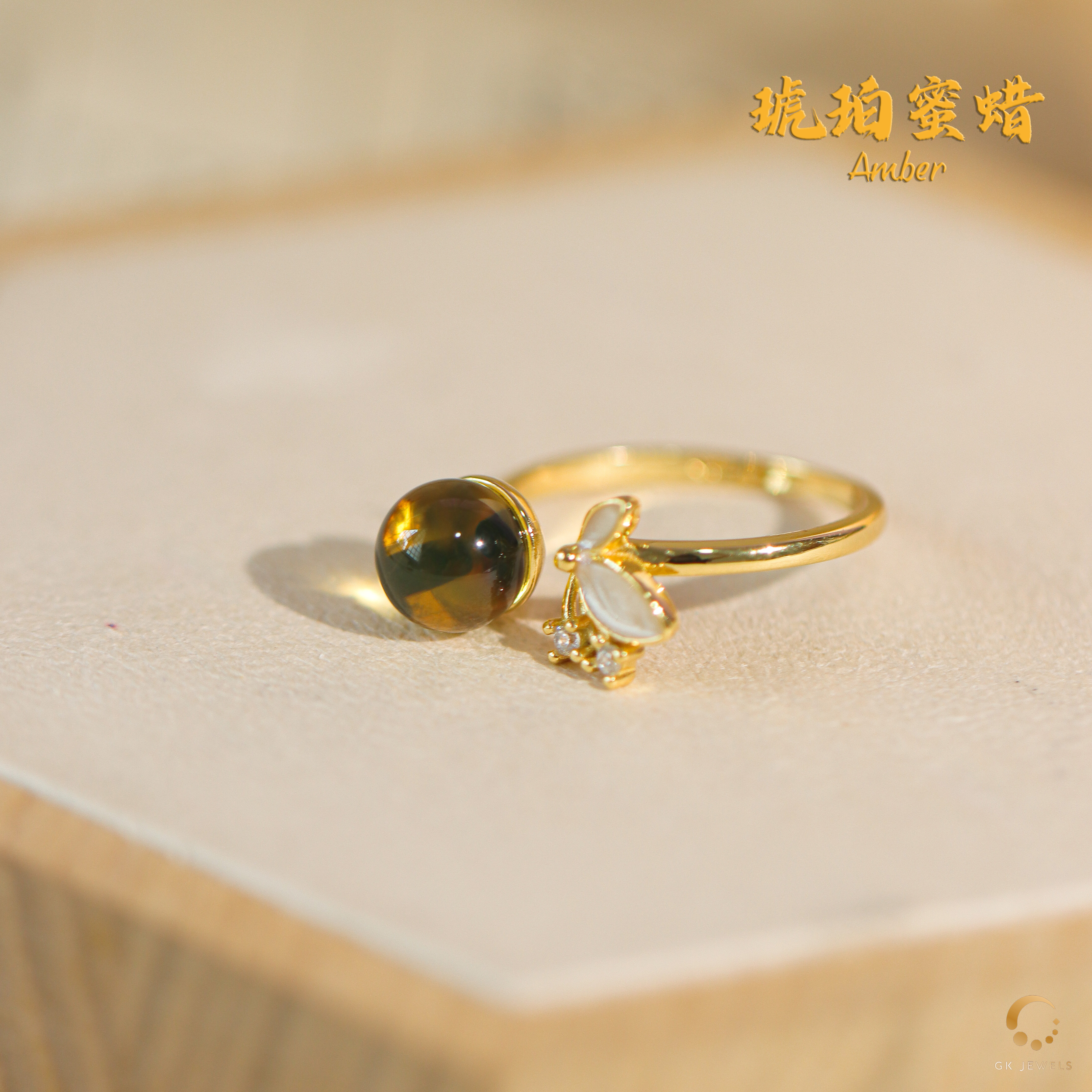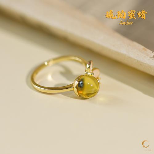 蓝珀蝴蝶设计戒指