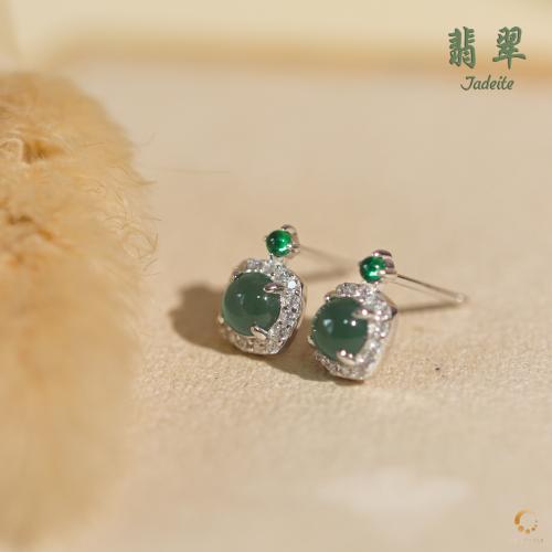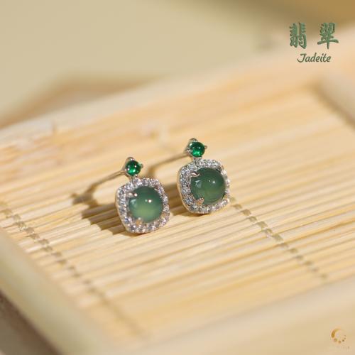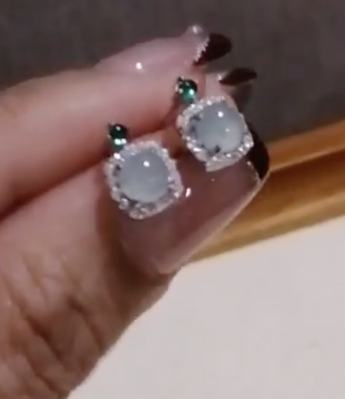 翡翠蓝水带钻方形耳钉 7mm左右