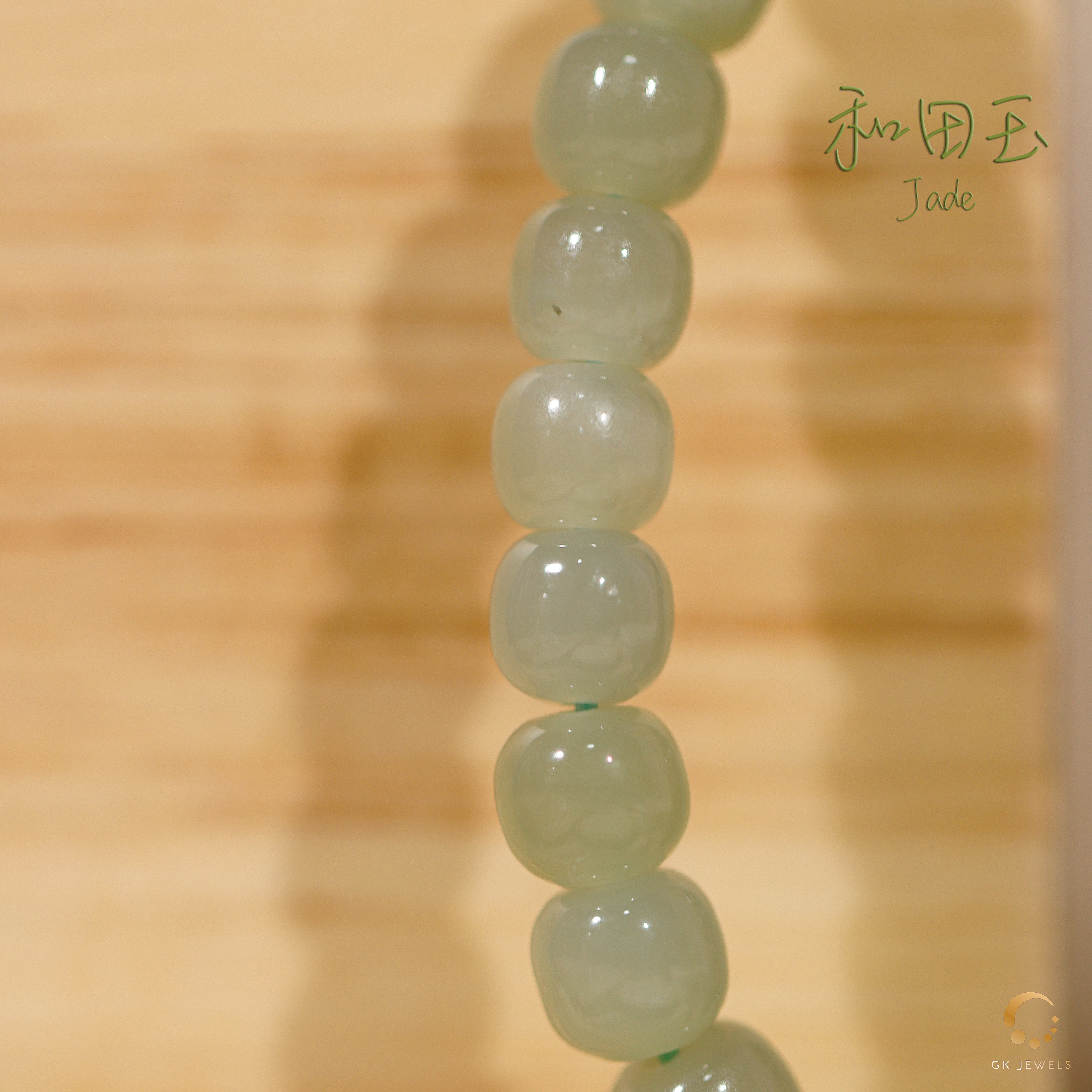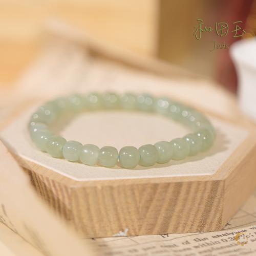 和田青玉苹果形手串 6x7mm左右