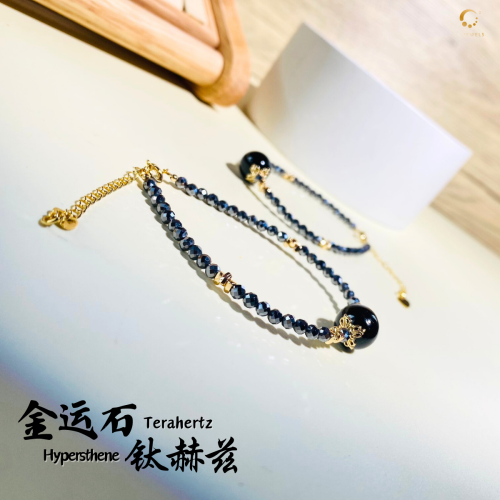 钛赫兹配金运石切面手链 10mm左右