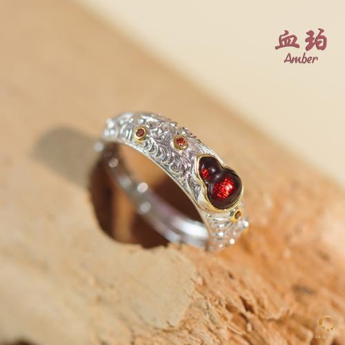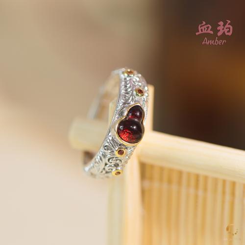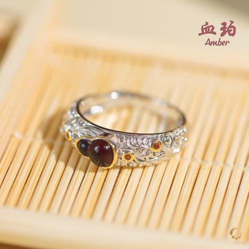 血珀葫芦镂空戒指