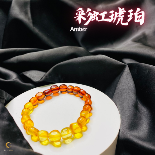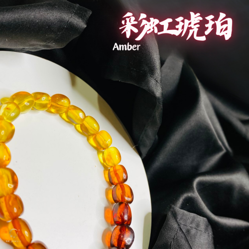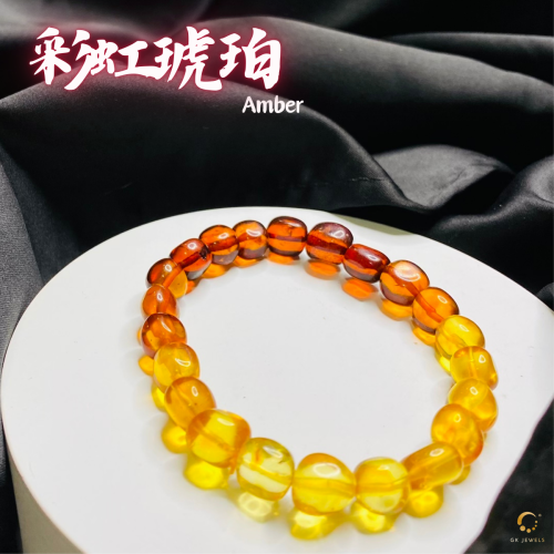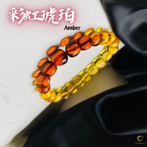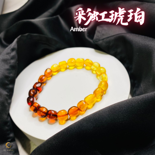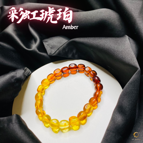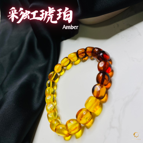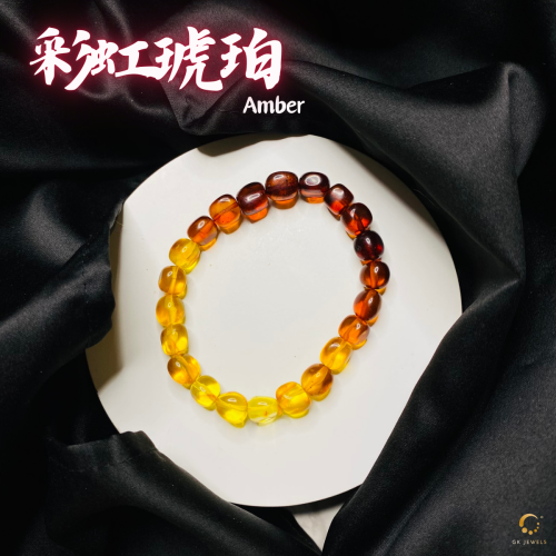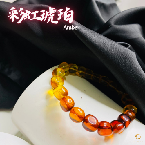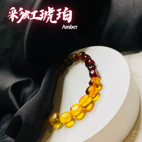 彩虹琥珀随形手串 8-9mm左右