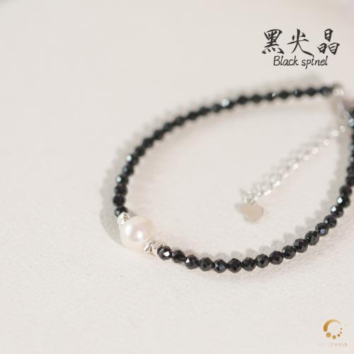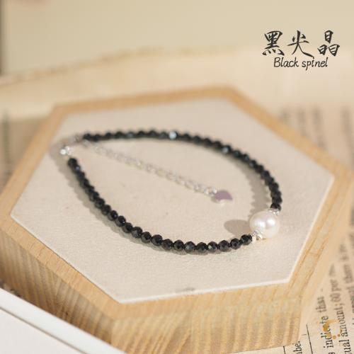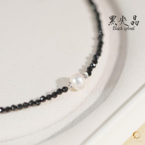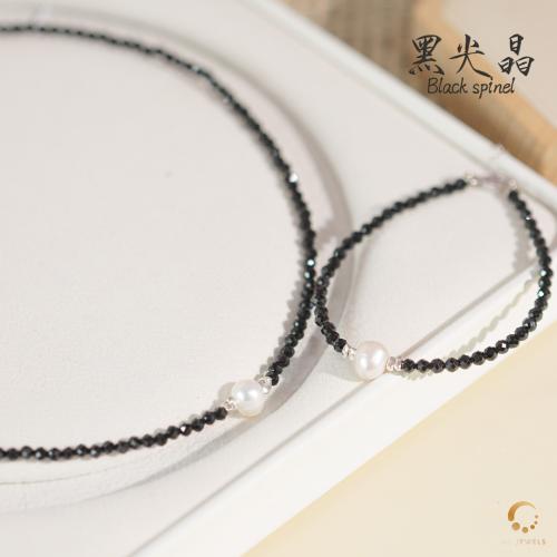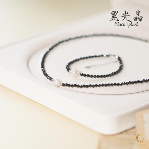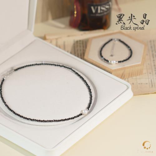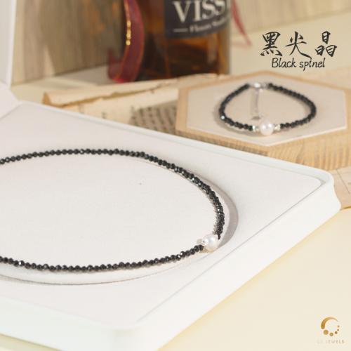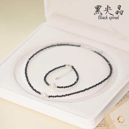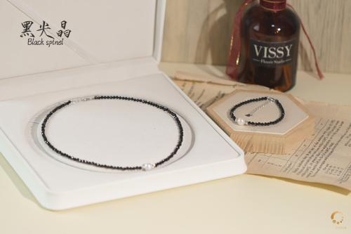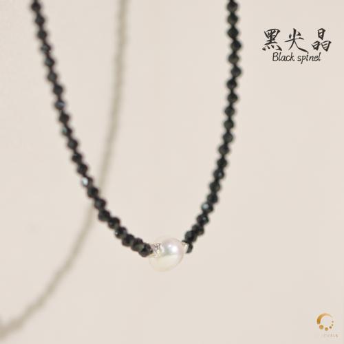 黑尖晶切面配珍珠项链 43cm左右