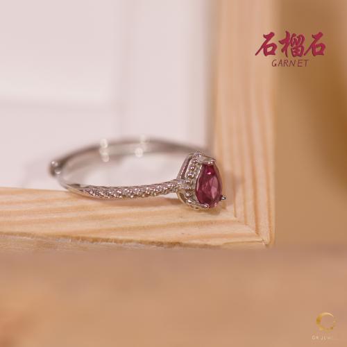 石榴石水滴戒指 6mm左右