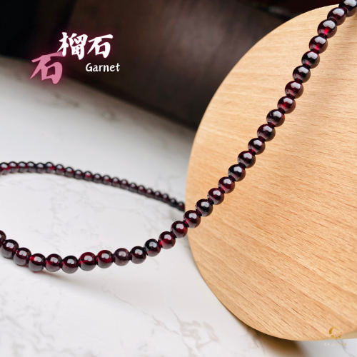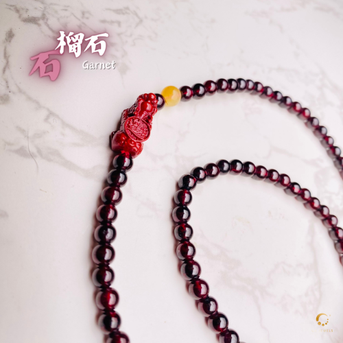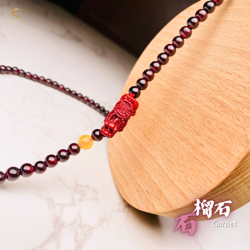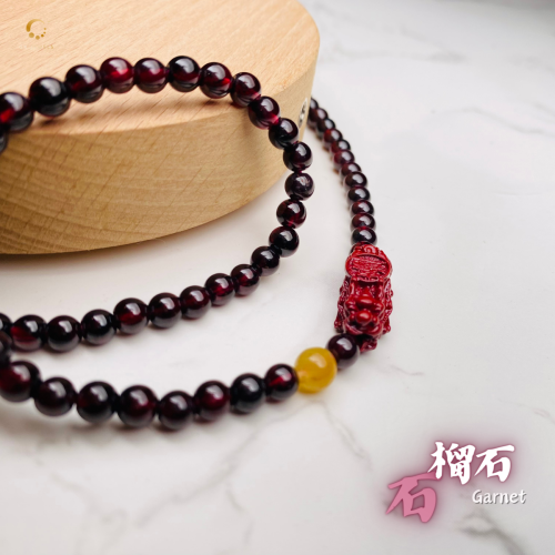 石榴石配朱砂貔貅3圈手串 5mm左右