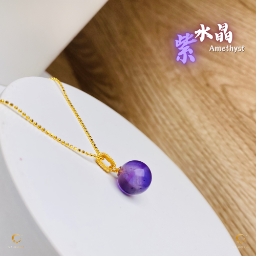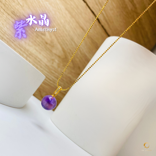 紫水晶单珠带钻吊坠(包括项链)