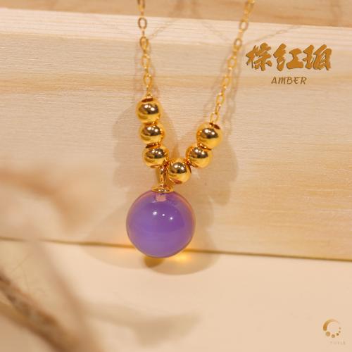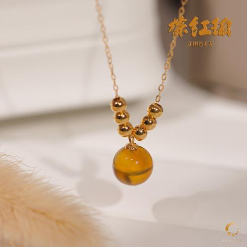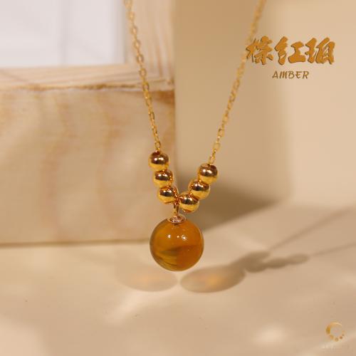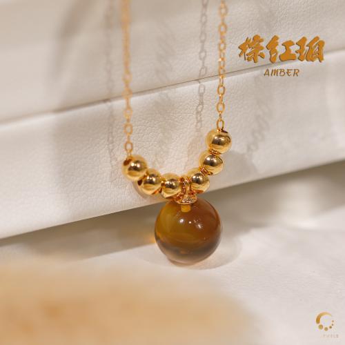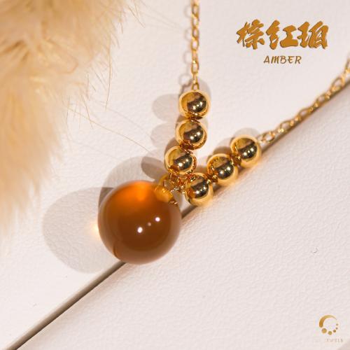 棕红珀吊坠 9mm左右(包括项链)